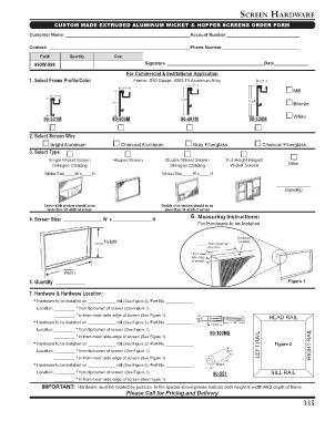 CUSTOM MADE EXTRUDED ALUMINUM WICKET & HOPPER SCREENS ORDER FORM