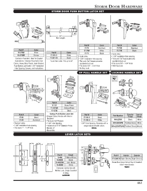 Part # Color Quincy Push Button Latch Set Part # Color Part Number Exterior Interior