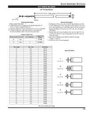 3. Select the part number from the chart below for (2) 1/4" pin configuration. Example: If ordering a 36" balance for a 23 lb. sash, your part number